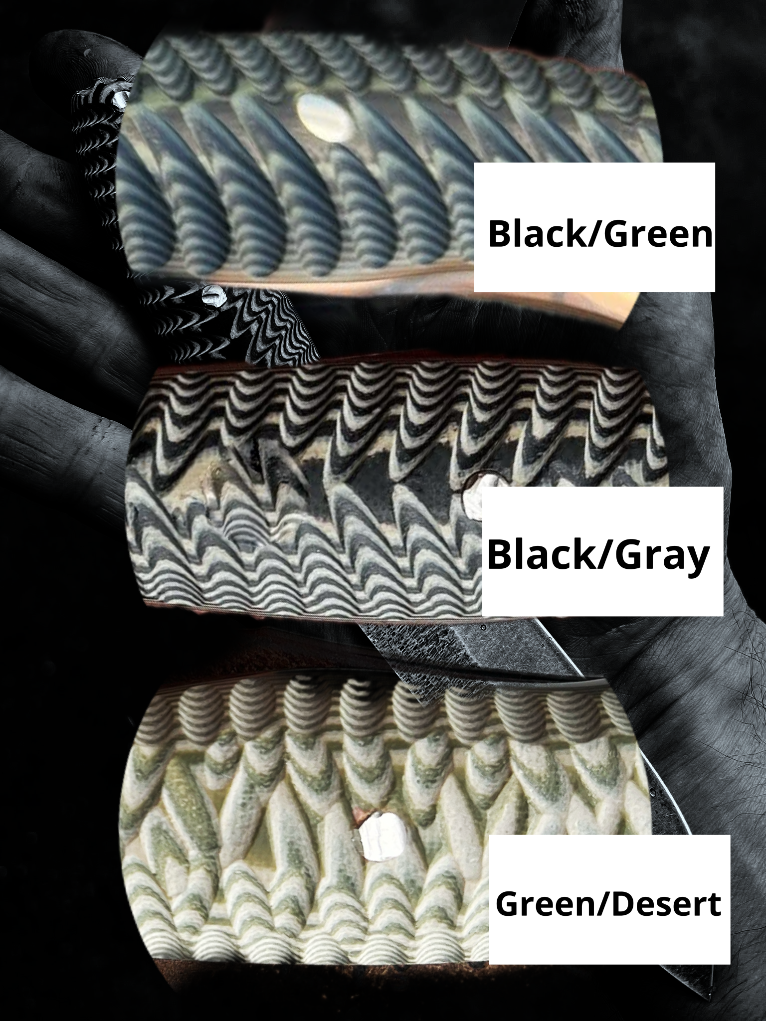 Handle: G10 (Options: Black/Green, Black/Gray, Green/Desert)