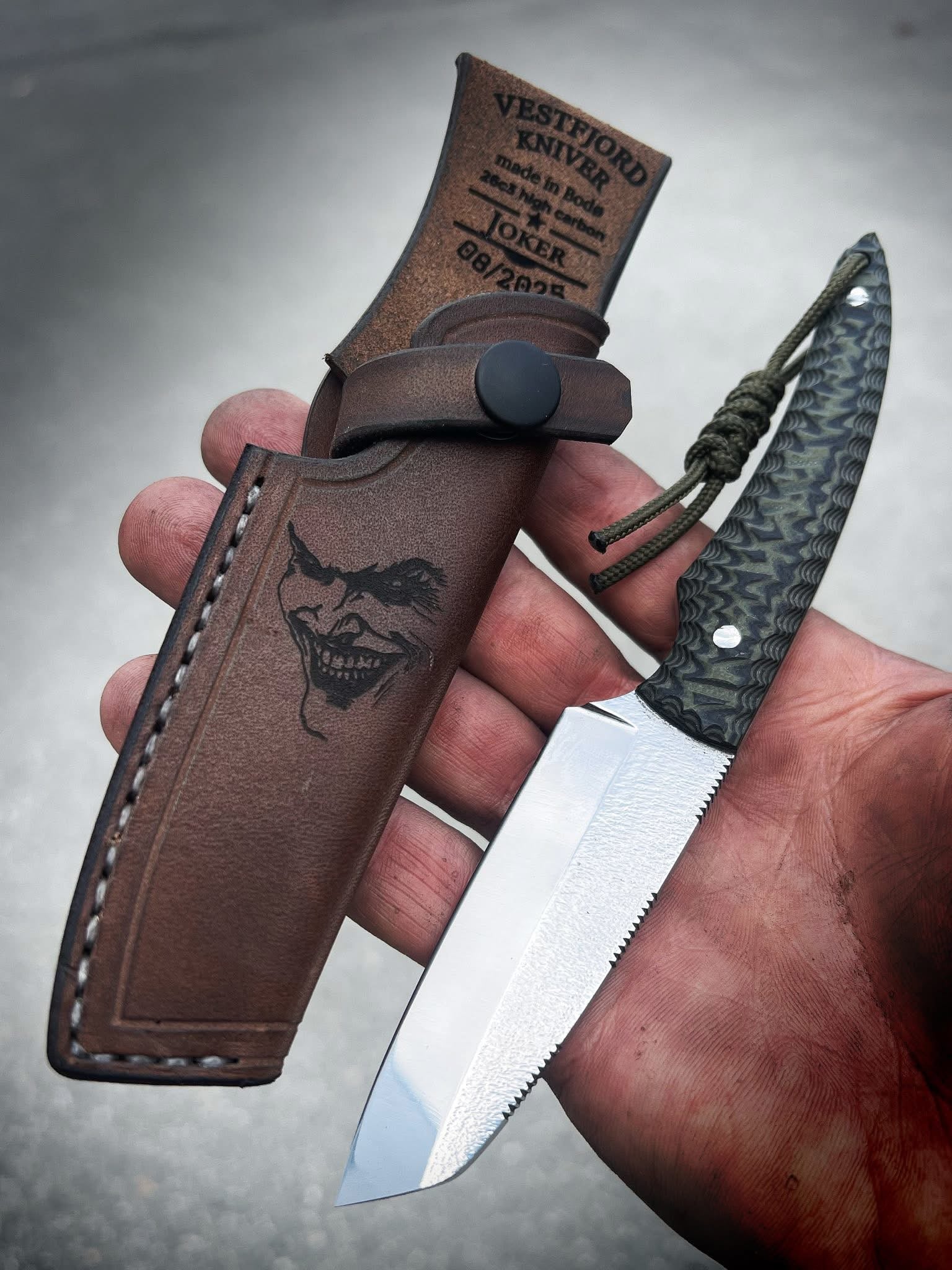 A small EDC and Hunting Knife in a very Special design. Made of razor sharp 26c3 high Carbon steel and with handle of G10 grip grind.